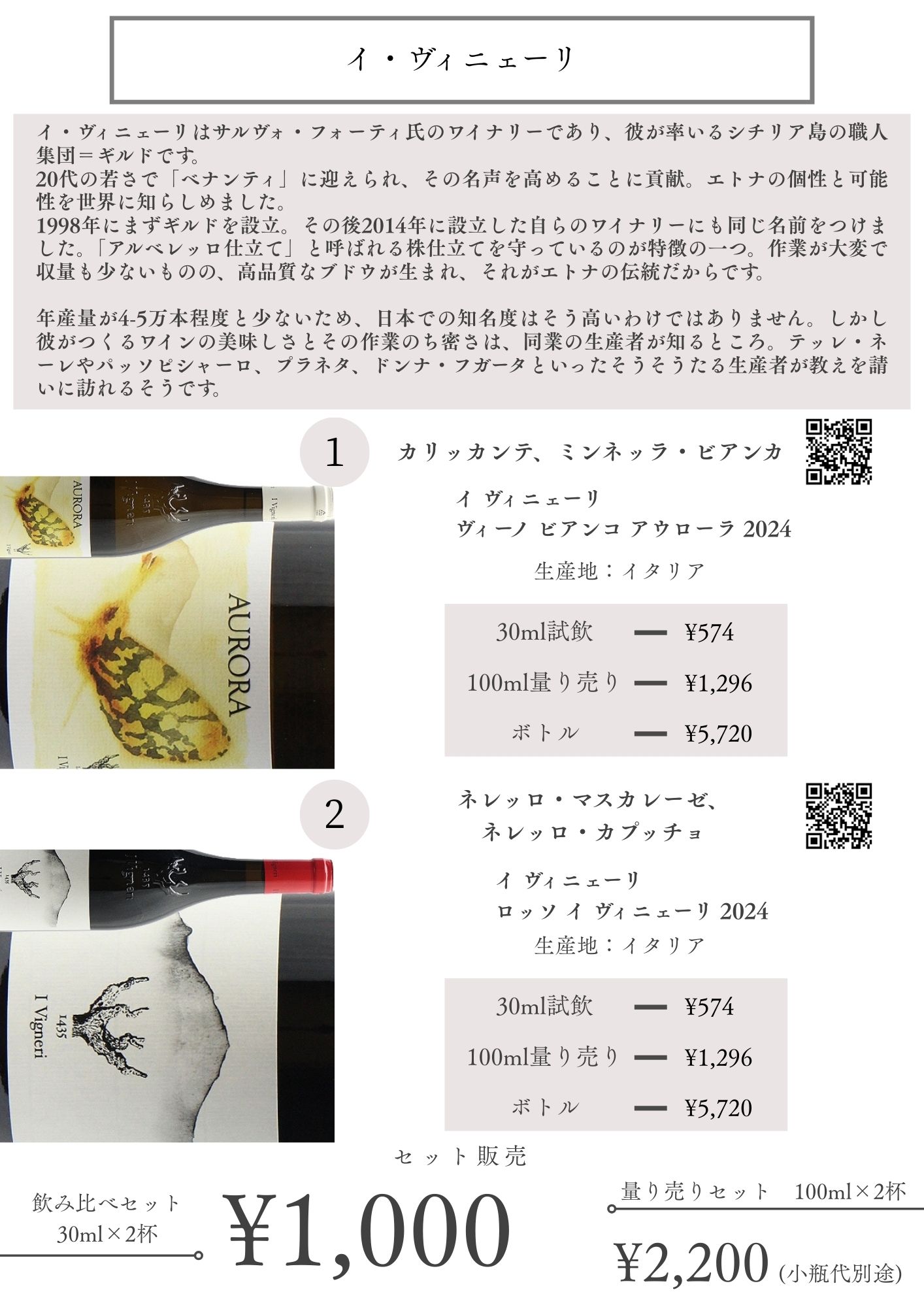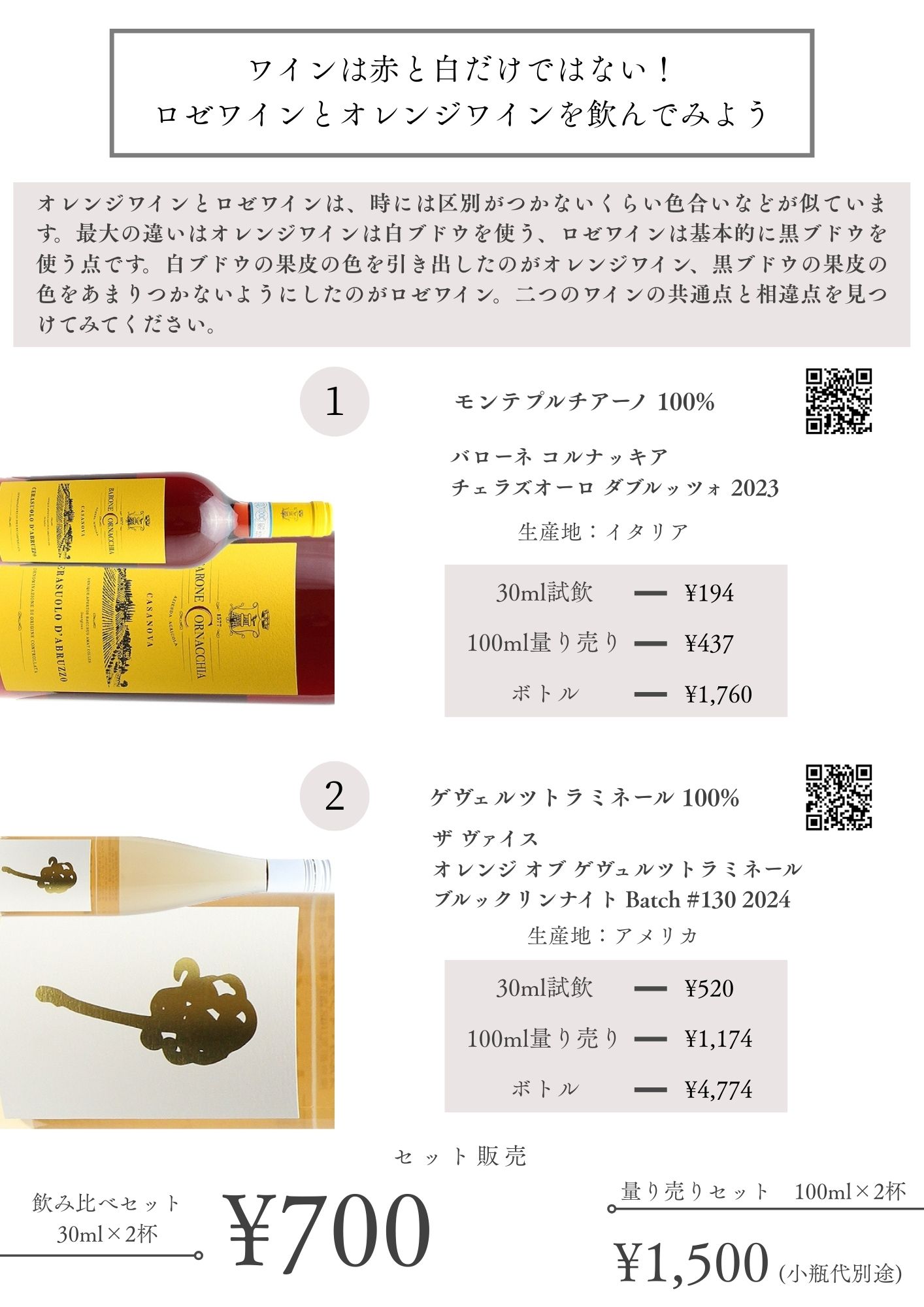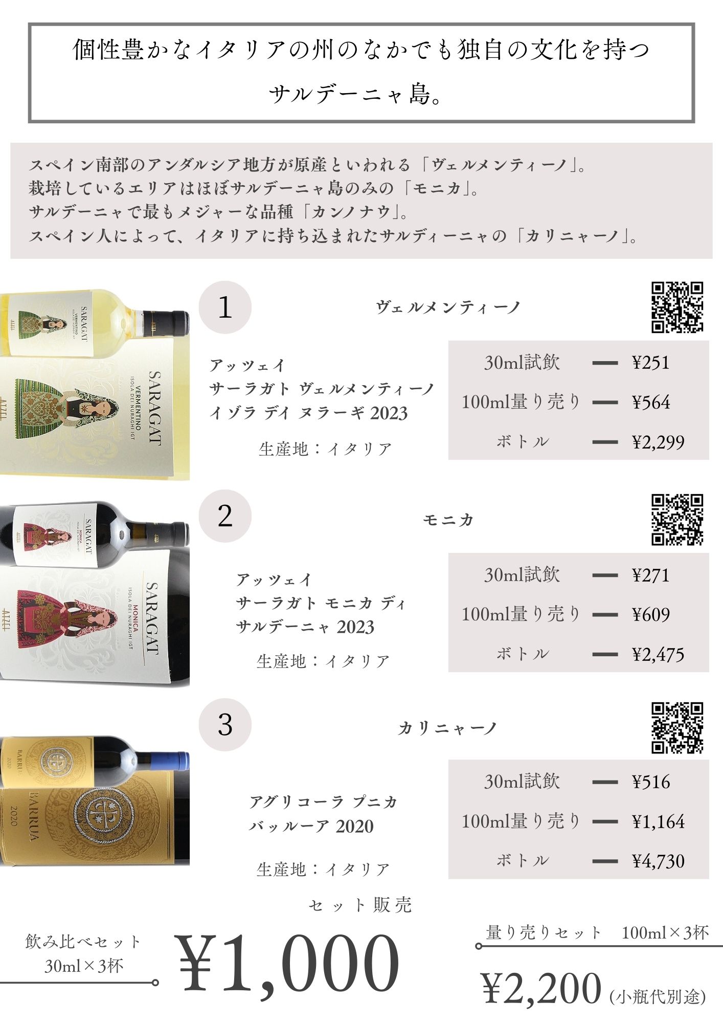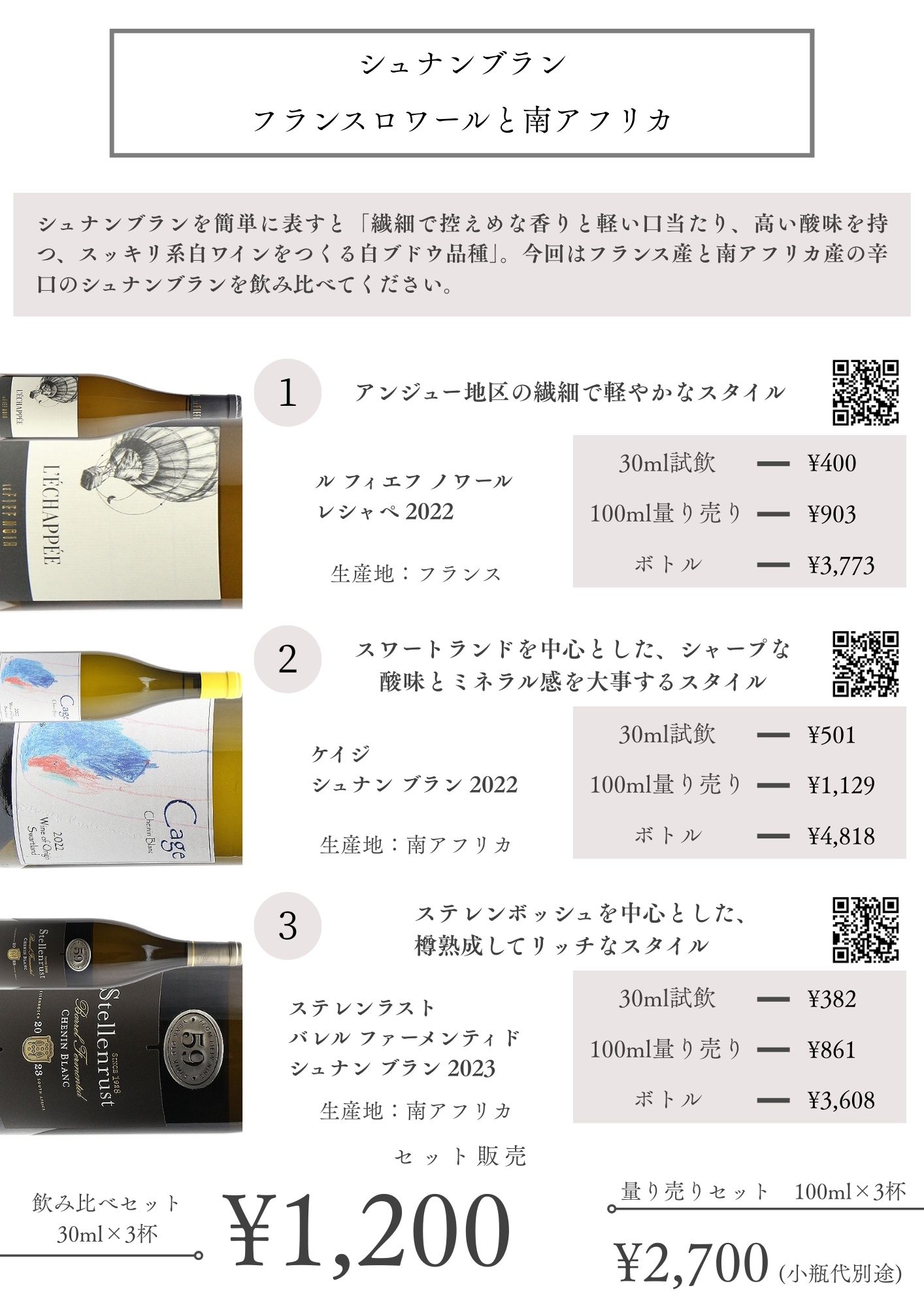 試飲ワイン 30ml ¥200~¥500 のワイン