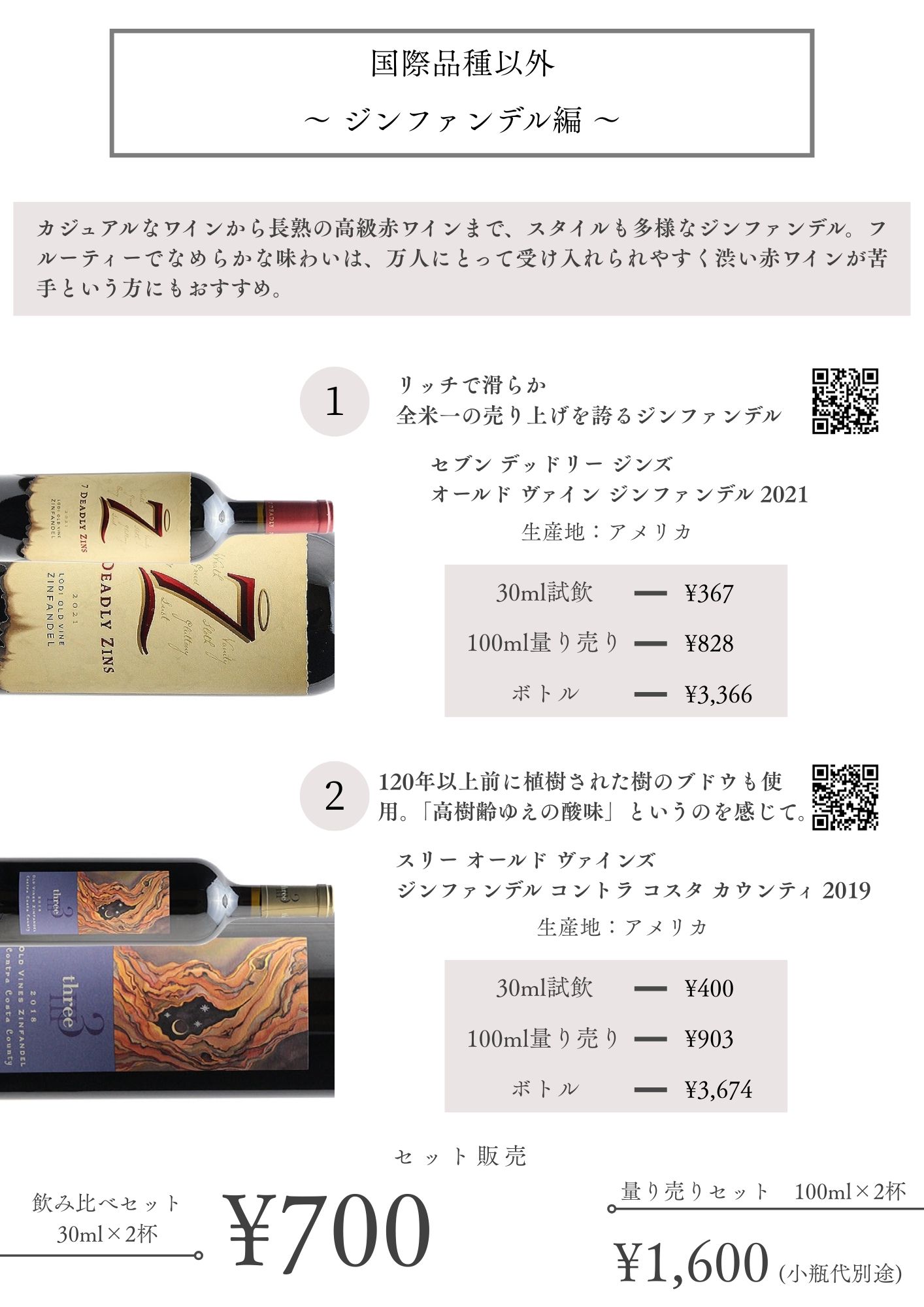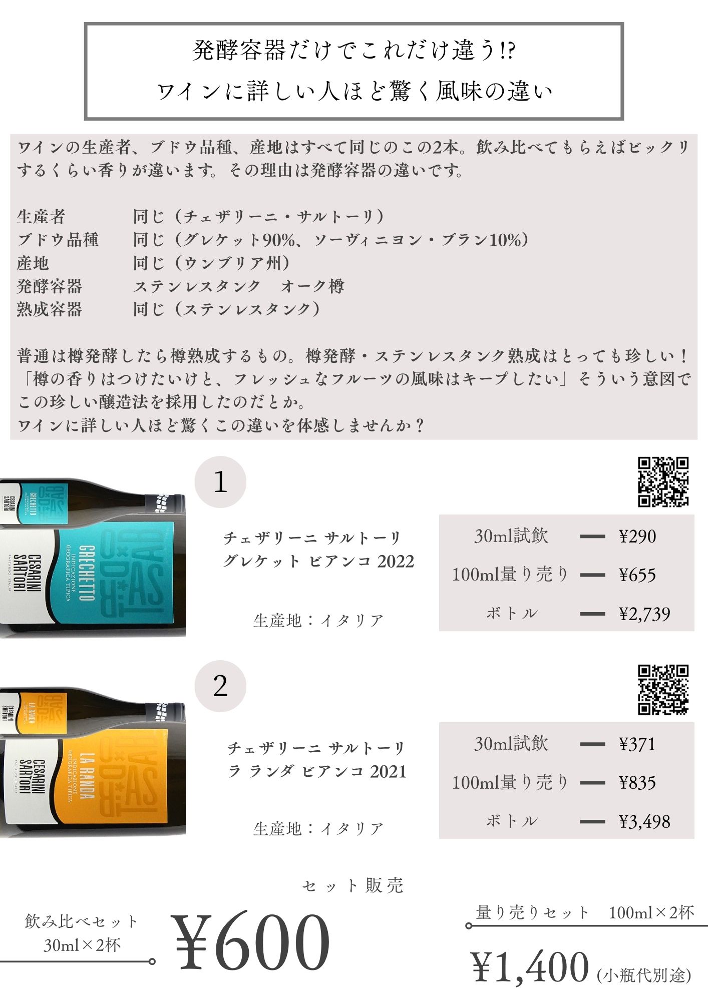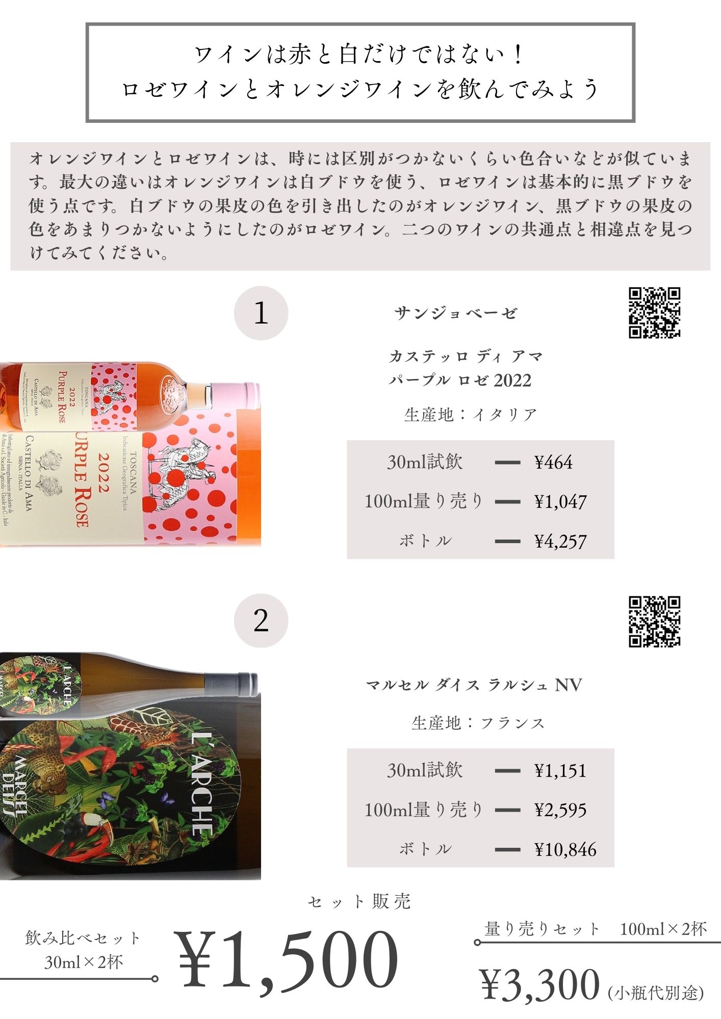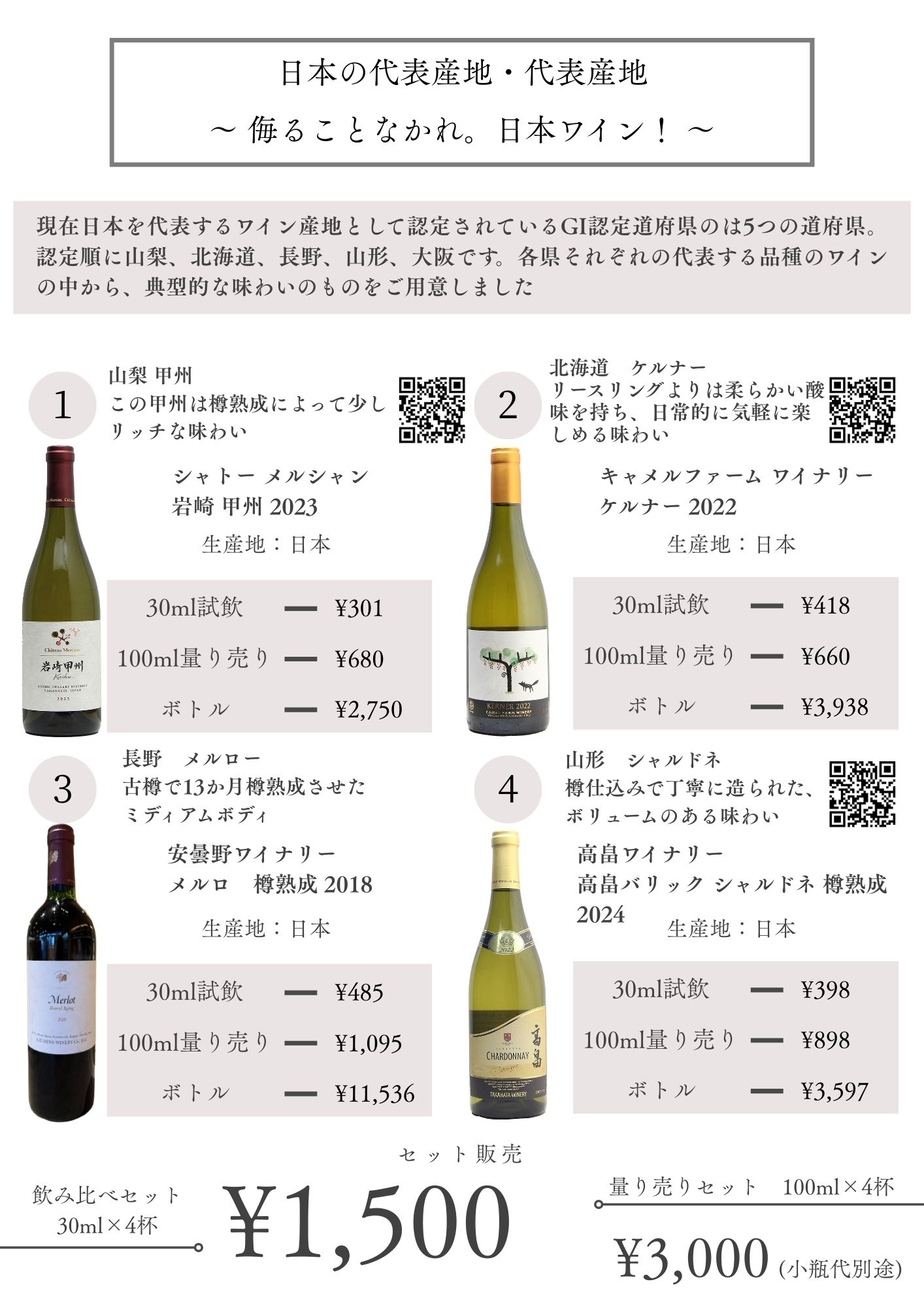 試飲ワイン 30ml ¥200~¥500 のワイン